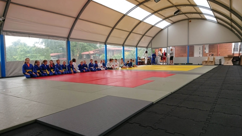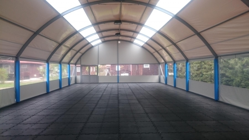 Halę namiotową 10 m x 22m z nawierzchnią poliuretanową ( zestaw materacy tatami )